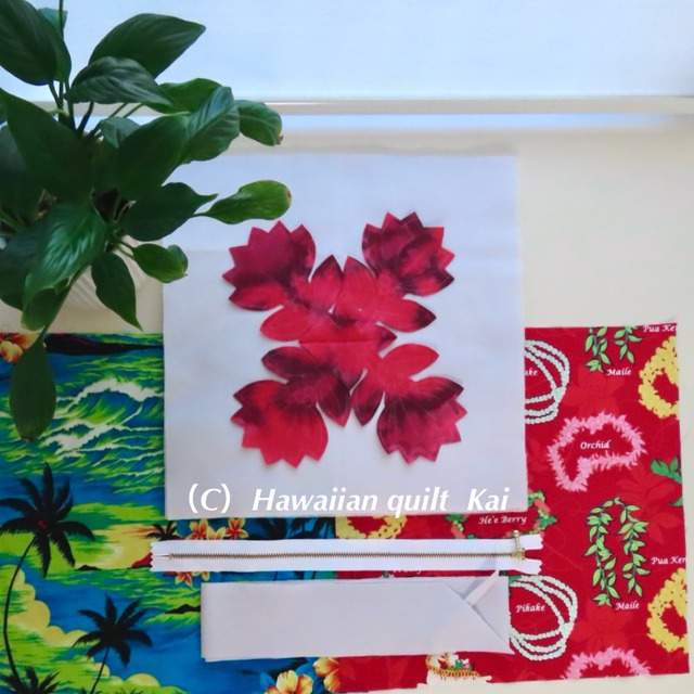 レフアのタペストリー→ペンケースになるハワイアンキルトキット